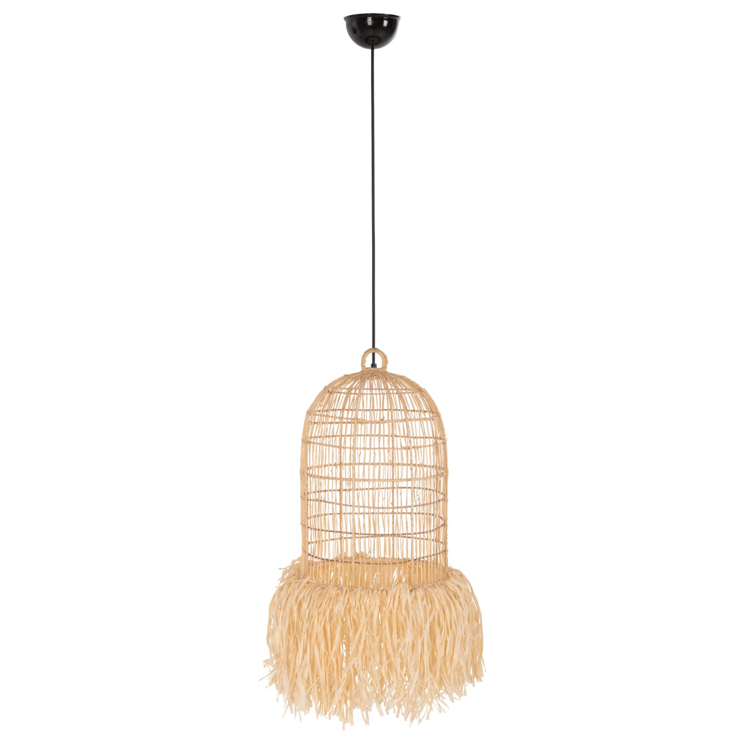Αν επιθυμείτε να διακοσμήσετε το χώρο σας με ένα φωτιστικό σε μοντέρνο στυλ, αυτή η καινούργια προσθήκη στην γκάμα μας θα σας ενθουσιάσει. Είναι ένα μονόφωτο φωτιστικό με καπέλο σε σχήμα κλουβιού με κρόσια στο κάτω μέρος, από ίνες φύλλων φοίνικα σε ΦΥΣΙΚΟ χρώμα. Είναι πανέμορφο και σίγουρα μπορεί να αλλάξει προς το καλύτερο την εικόνα του χώρου σας.