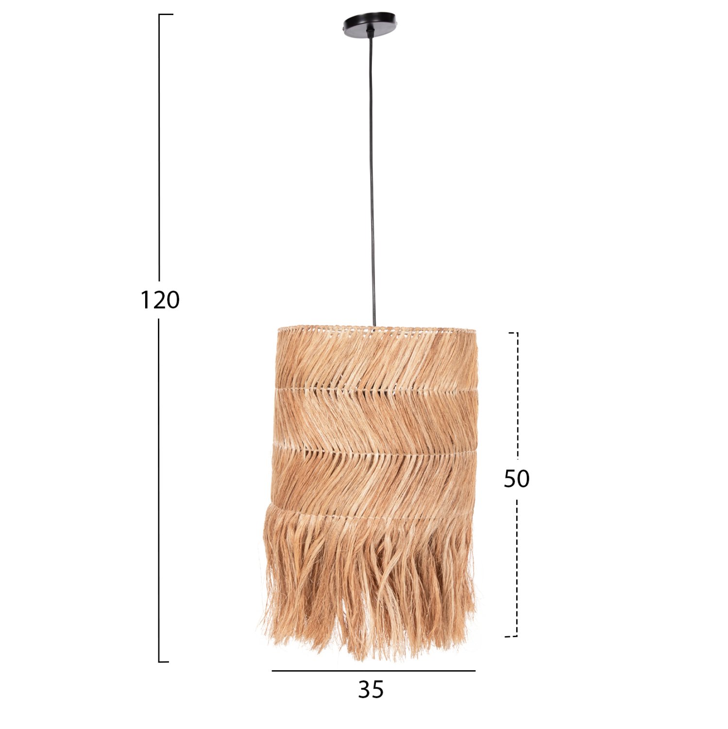 Hm7756- Kρεμαστό φωτιστικό—- Αν επιθυμείτε να διακοσμήσετε το χώρο σας με ένα φωτιστικό σε boho στυλ, αυτό είναι η πιο σωστή επιλογή. Είναι ένα μονόφωτο φωτιστικό με μακρύ κυλινδρικό «καπέλο» φτιαγμένο από ίνες κάνναβης Μανίλας ή αλλιώς αμπακά, σε φυσικό χρώμα (ξανθό) σε 3 σειρές με αντίθετη φορά των ινών και κρόσια στο τελείωμα.