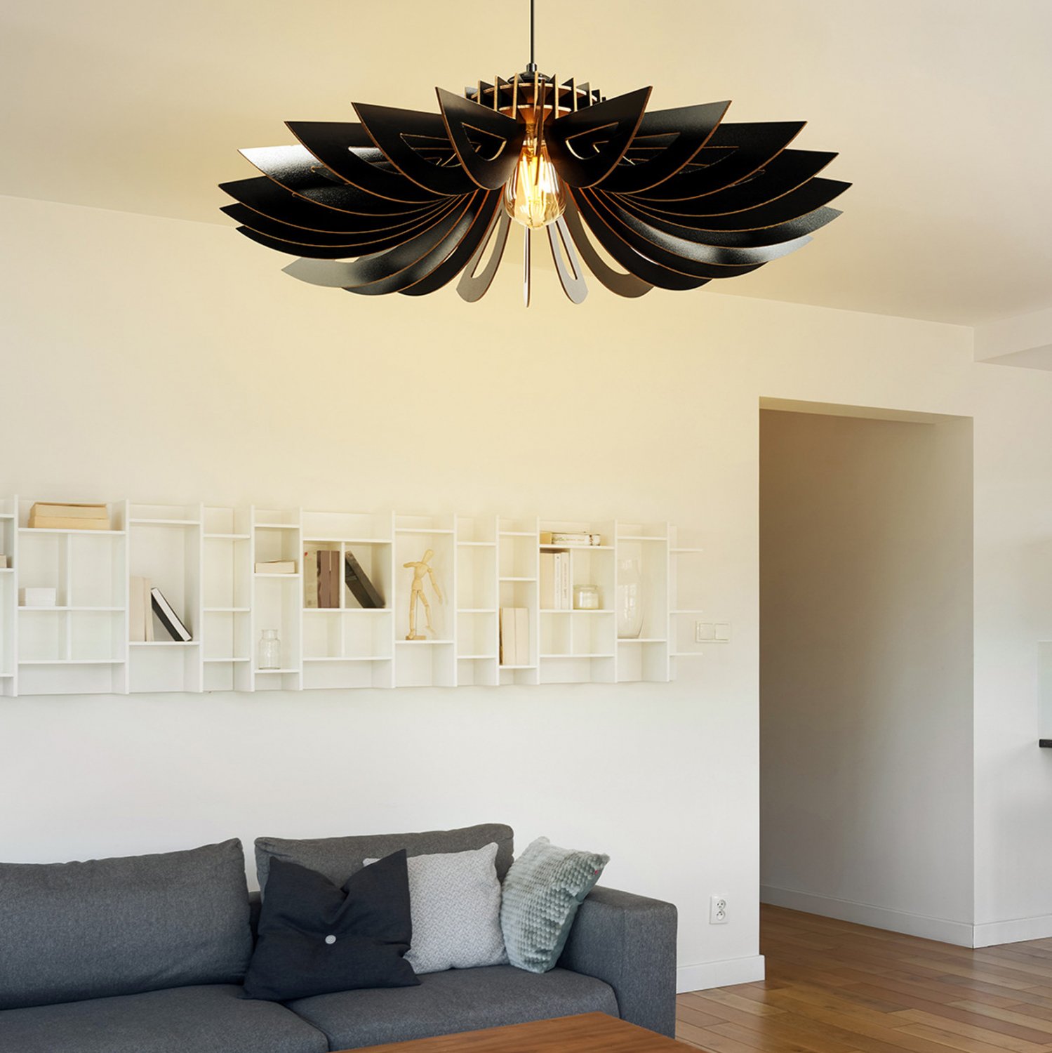 ΦΩΤΙΣΤΙΚΟ ΟΡΟΦΗΣ ΞΥΛΙΝΟ ΚΡΕΜΑΣΤΟ ΜΑΥΡΟ HM7349.03 Φ52×45Υ εκ.