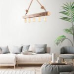 Φωτιστικό οροφής industrial αλλά και rustic στιλ. Κατασκευασμένο από ξύλινη ράγα φυσικού χρώματος και σχοινί σε φυσική απόχρωση.