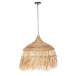 Hm7777- Kρεμαστό φωτιστικό—- Αν επιθυμείτε να διακοσμήσετε το χώρο σας με ένα φωτιστικό σε boho στυλ, αυτό είναι μια χαρακτηριστική επιλογή. Είναι ένα μονόφωτο με «καπέλο» σε σχήμα καμπάνας φτιαγμένο από ανακυκλωμένες ίνες κάνναβης Μανίλας και ιδιαιτέρως μακριά κρόσια από τις ίδιες ίνες.