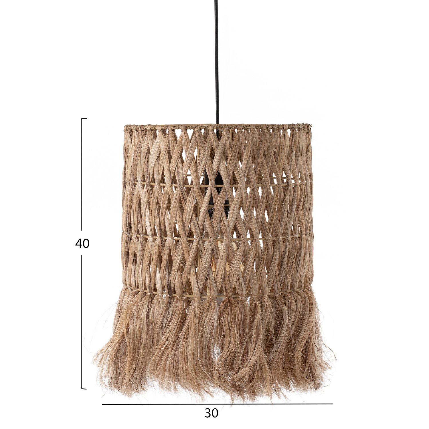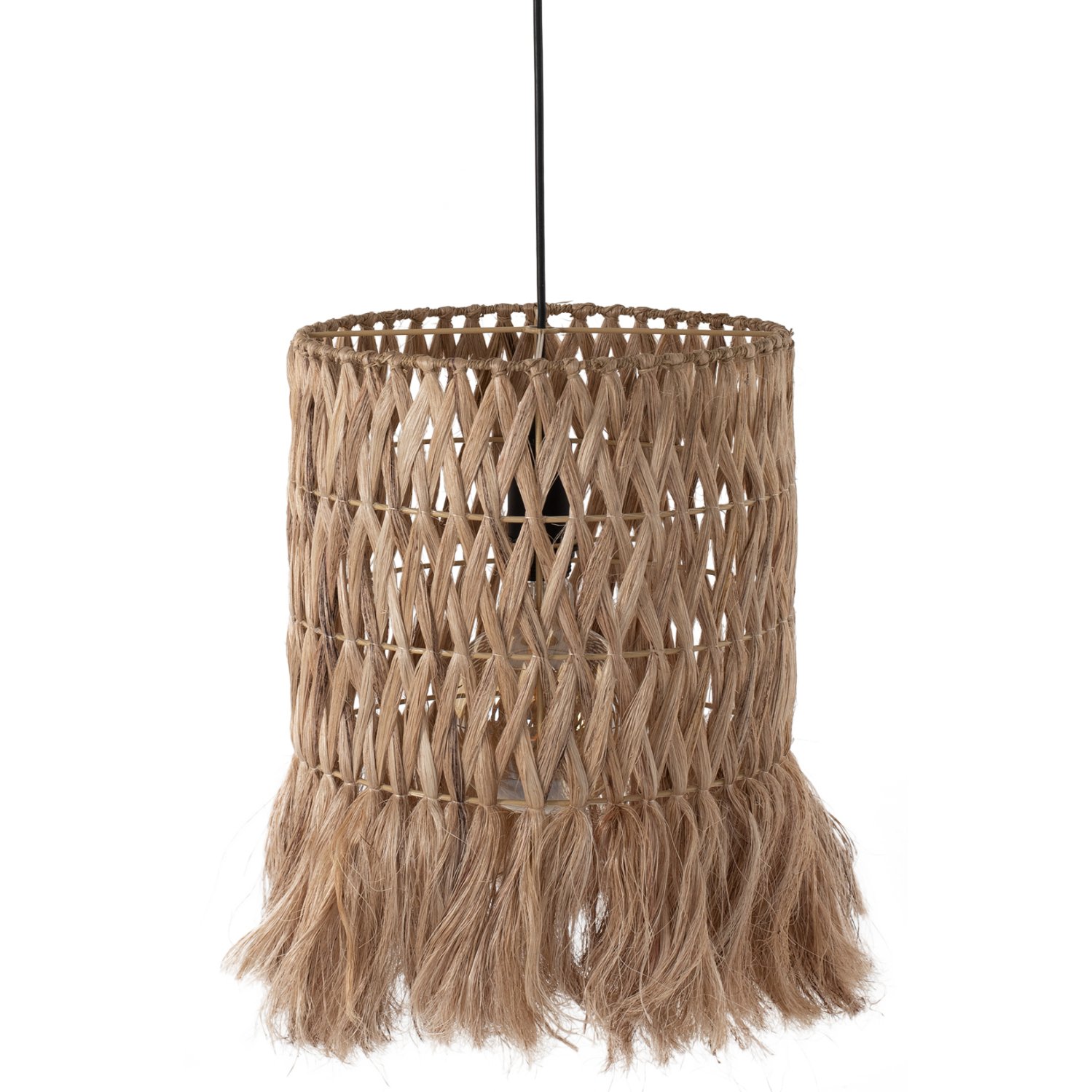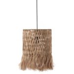 Hm7781- Kρεμαστό φωτιστικό—- Αν επιθυμείτε να διακοσμήσετε το χώρο σας με ένα φωτιστικό σε boho στυλ, αυτό θα σας τραβήξει την προσοχή. Είναι ένα μονόφωτο φωτιστικό με μακρύ κυλινδρικό «καπέλο» φτιαγμένο από ίνες κάνναβης Μανίλας ή αλλιώς αμπακά, σε φυσικό χρώμα σε 3 σειρές με πλεκτή χιαστί διάταξη των ινών και κρόσια στο τελείωμα.