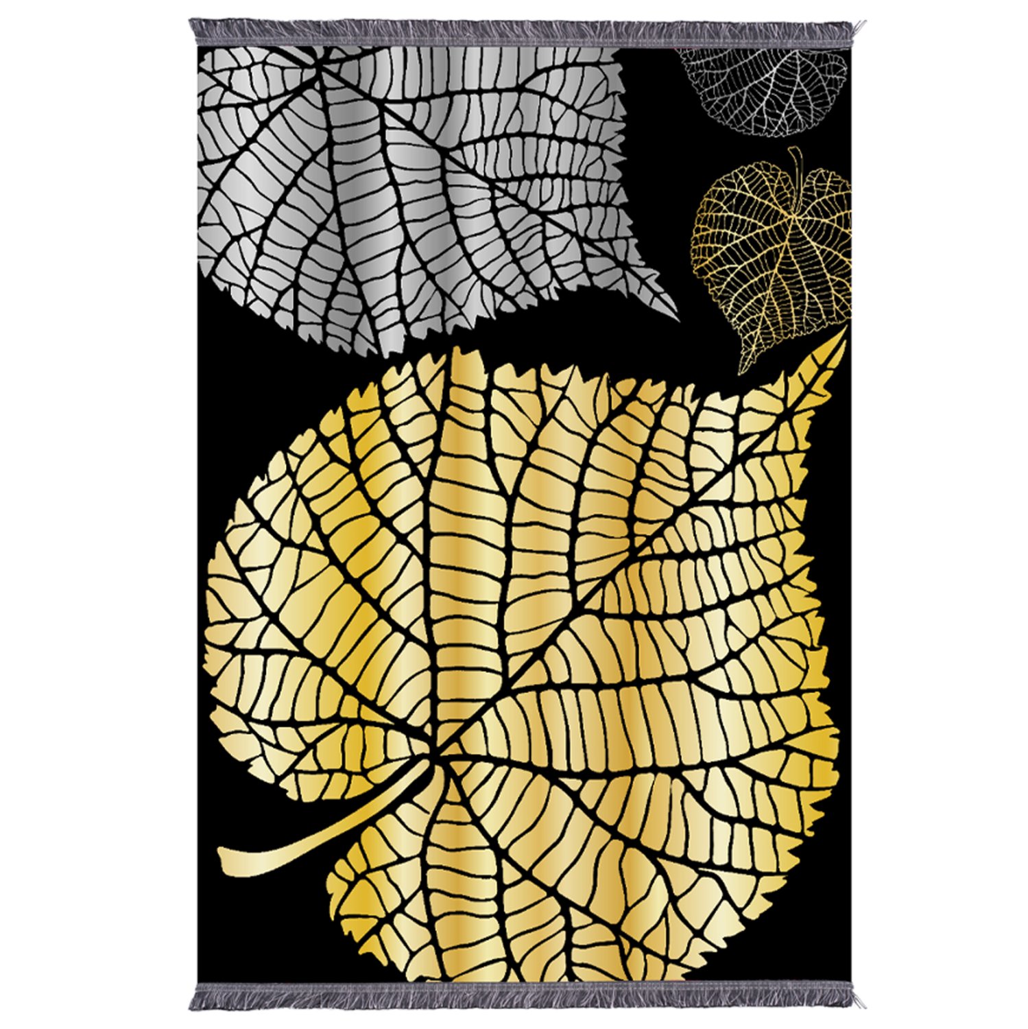 ΗΜ7723.39- χαλί σαλονιού—— Σας παρουσιάζουμε την νέα προσθήκη στην γκάμα των προϊόντων μας. Αυτό το χαλί απεικονίζει φύλλα δέντρου σε κίτρινο και γκρι χρώμα σε ΜΑΥΡΟ φόντο.